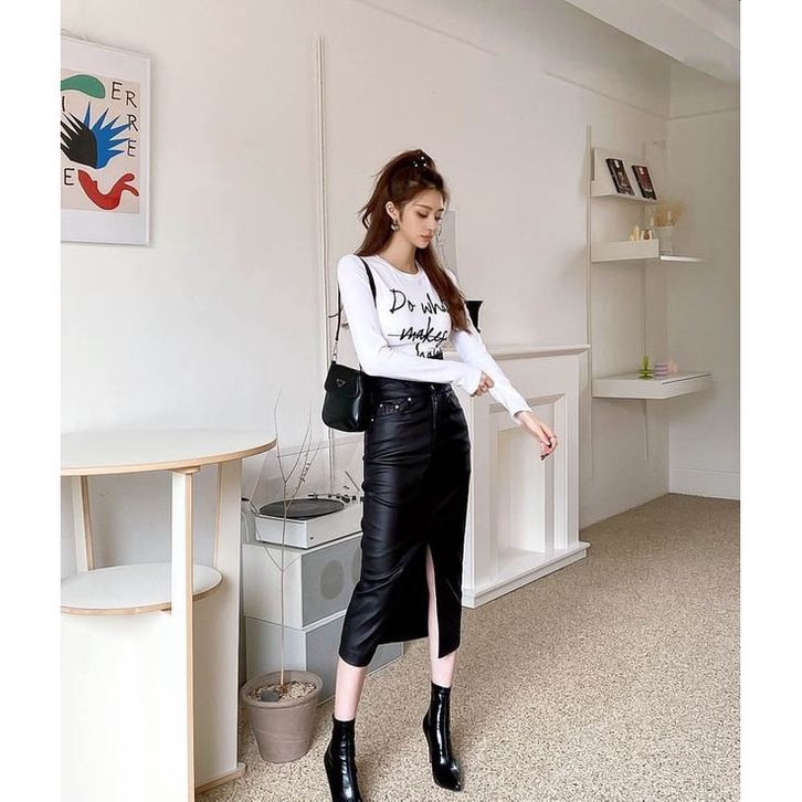 Rok Kulit PU Rok Midi Wanita Korea Style Model Terkini 2022