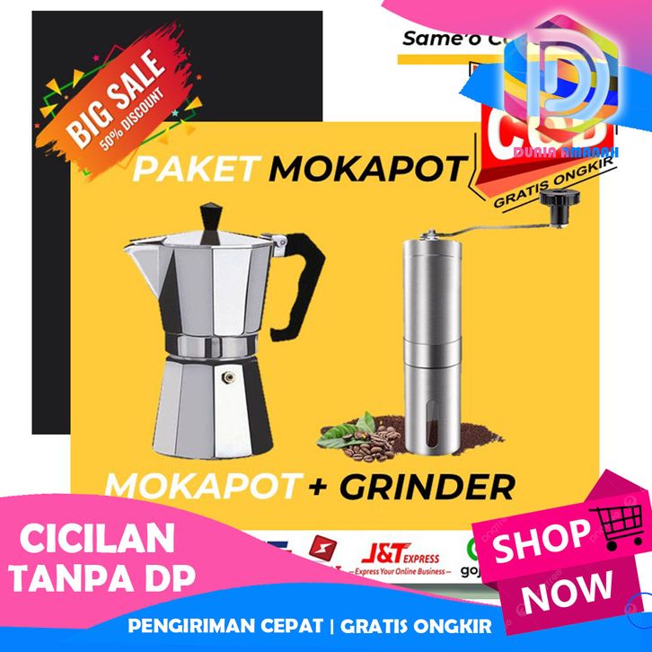 CICILAN/BARU+ PAKET COFFEE GRINDER + MOKA POT 3 6 CUP ( ALAT SEDUH KOPI MANUAL )