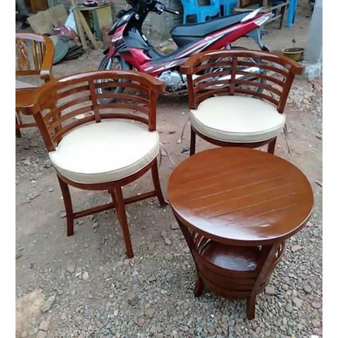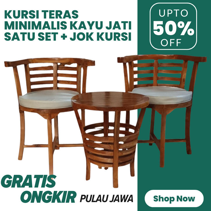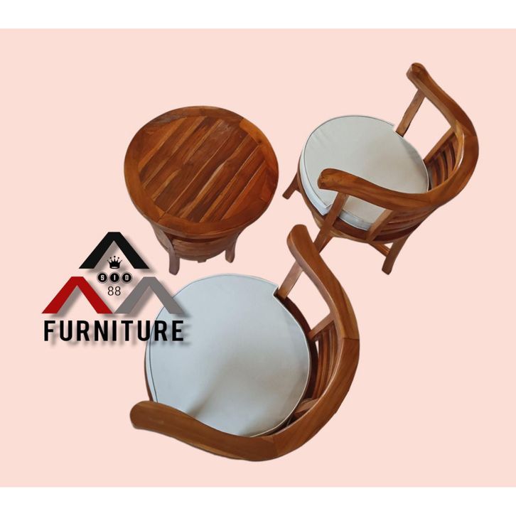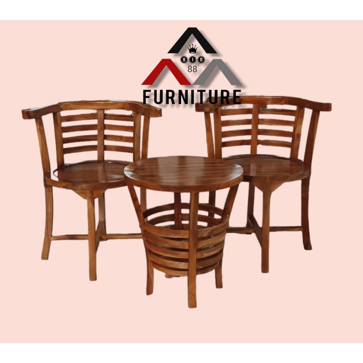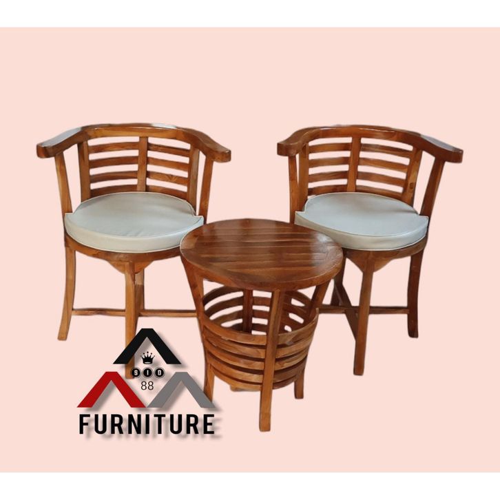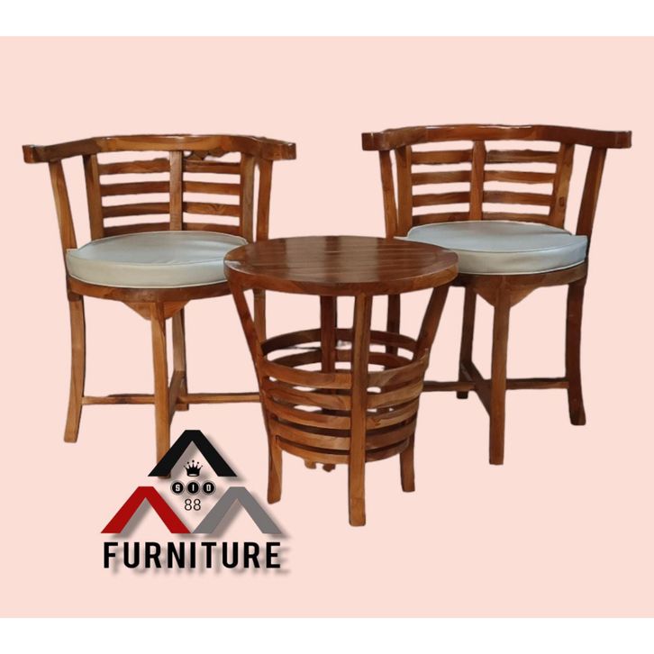 KURSI TERAS KURSI MINIMALIS CANTIK KECIL KAYU JATI ( 2 KURSI 1 MEJA POLITURE NC PALISANDER + JOK )