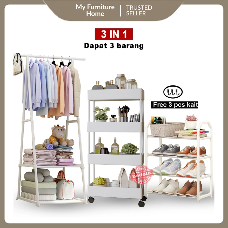 [Mall]Bedola combo 3 in 1 triangle rak baju + square rak susun serbaguna 4 tingkat + rak sepatu 4 tingkat