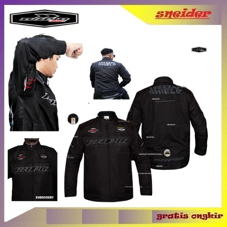 Jaket motor touring premium RAPID IRONSHIELD jacket reflektif, berventilasi, anti air dan anti angin
