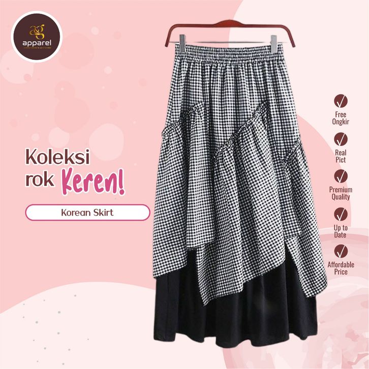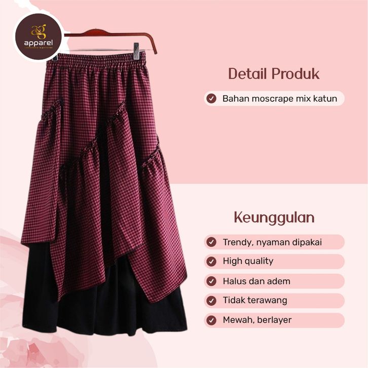 ROK PANJANG KOREAN STYLE - NINDI SKIRT KATUN MOSSCREPE PINGGANG KARET-BAWAHAN WANITA MUSLIM ROK REMPEL CASUAL KEKINIAN