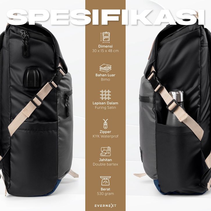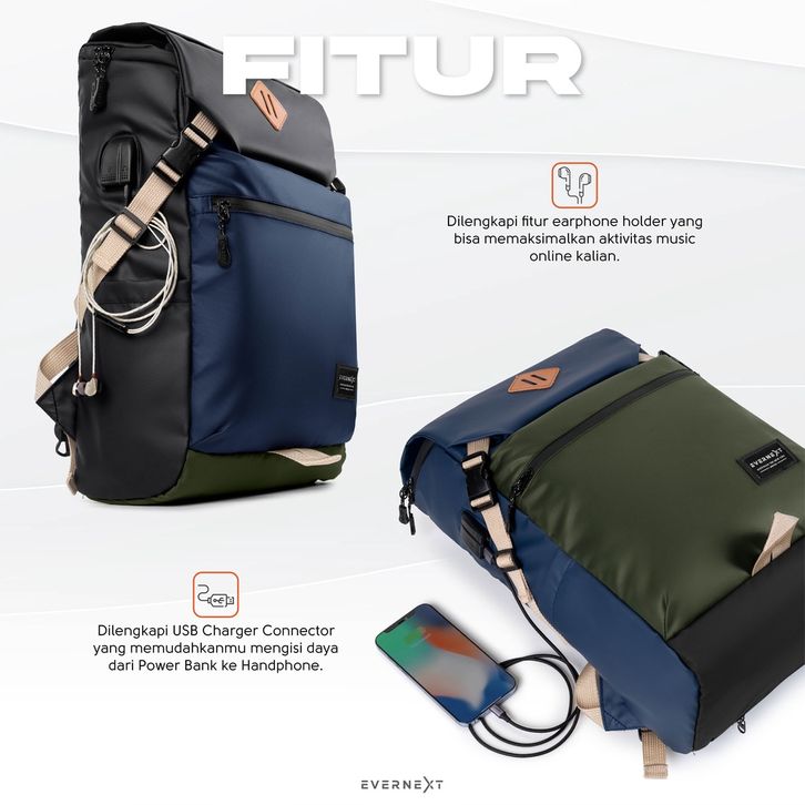 Evernext - Tas Ransel Laptop Pria Waterproof Tas Punggung Pria Backpack Rush Pria Tas Outdoor Pria Anti Air