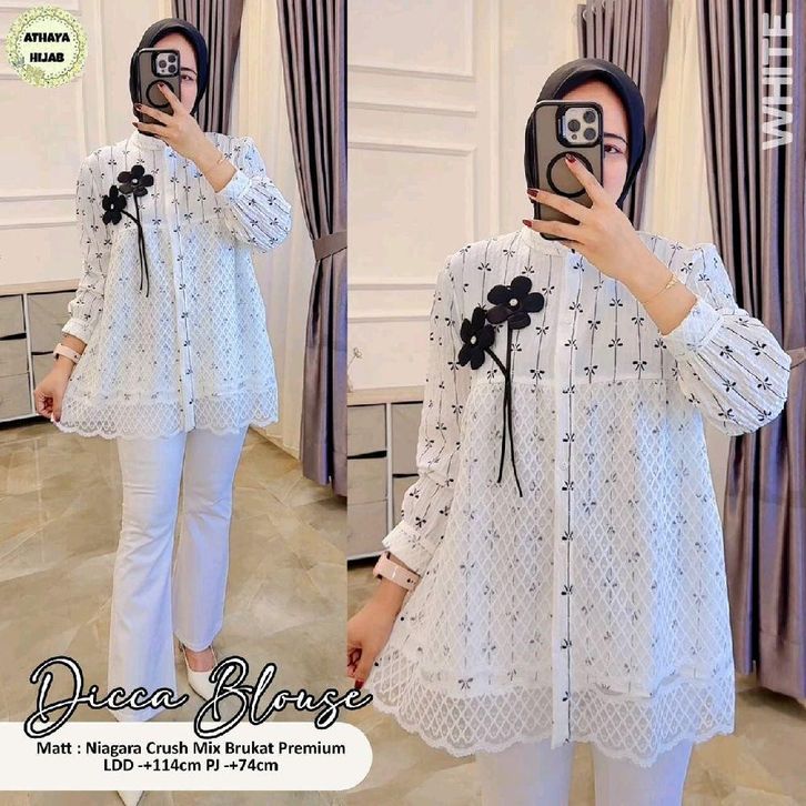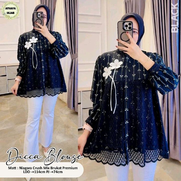Baju Atasan Brukat Wanita Dicca Blouse Extu • Matt Niagara Crush Mix Brokat Premium Ld 114 Nyaman Hitam Putih