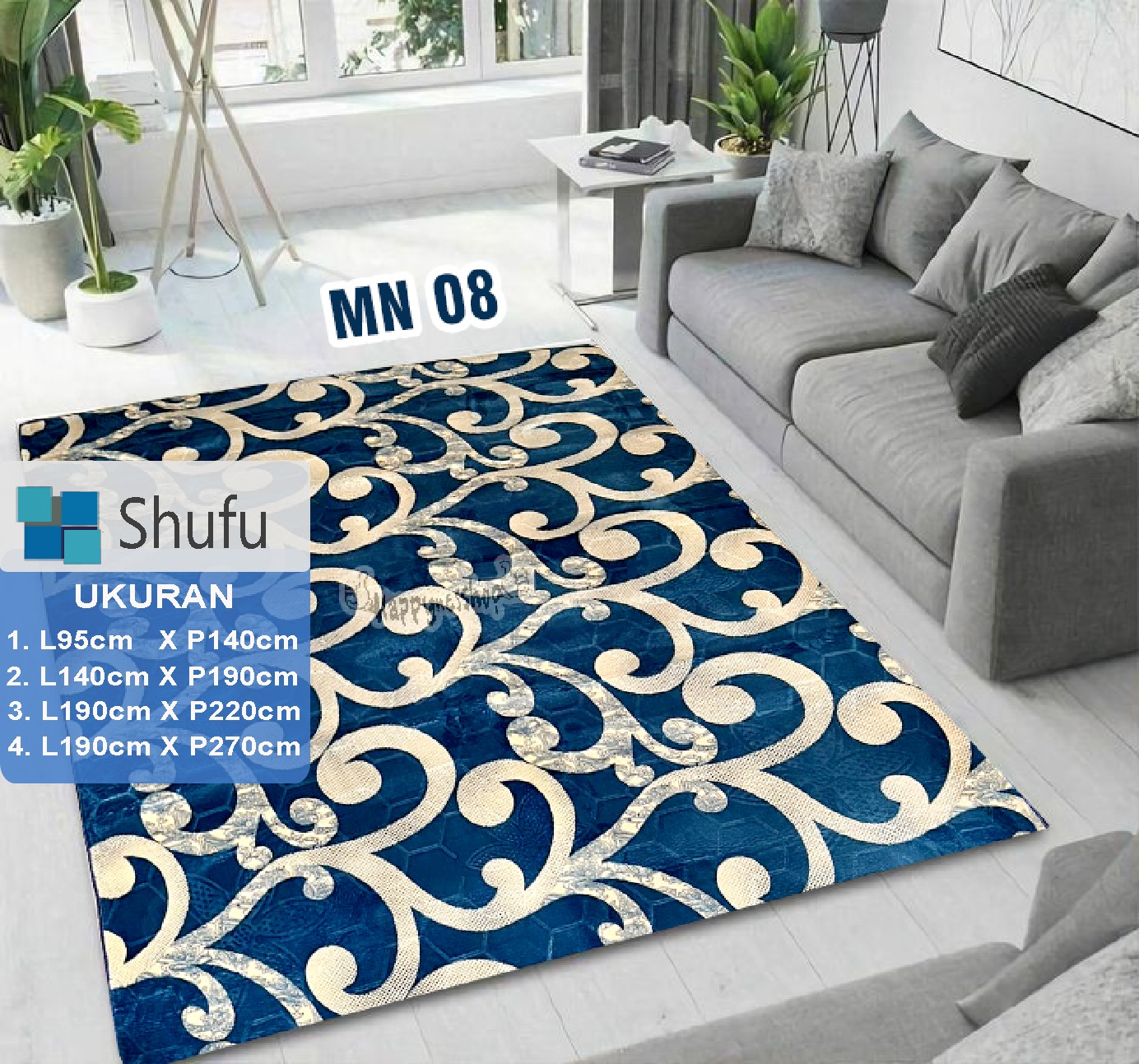 Karpet Malaysia Shufu Ukuran 95x140 tebal 18mm Motif Minimalis