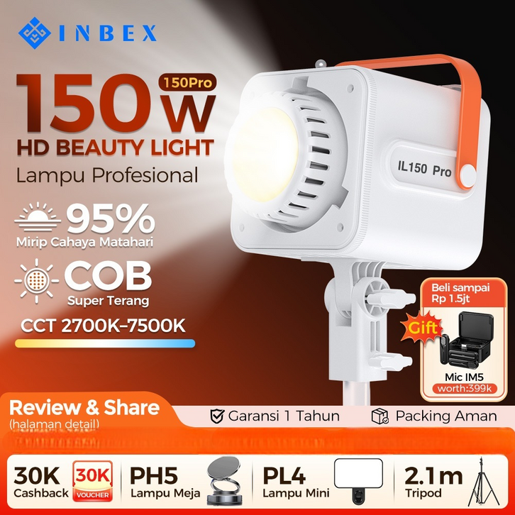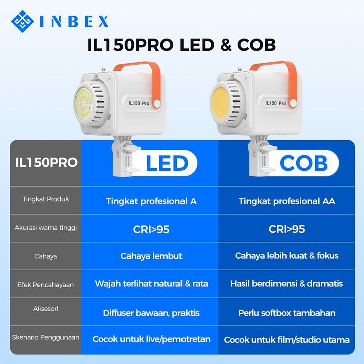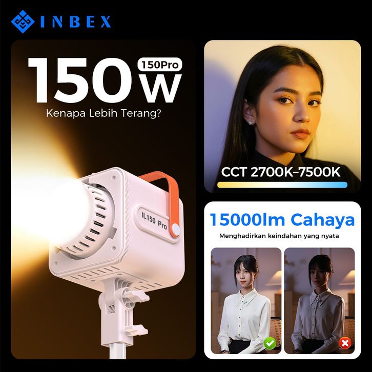 INBEX IL150Pro COB Lampu Studio Softbox Lighting Video LED Daylight CRI 98 untuk Live Streaming Fotografi Studio 5%