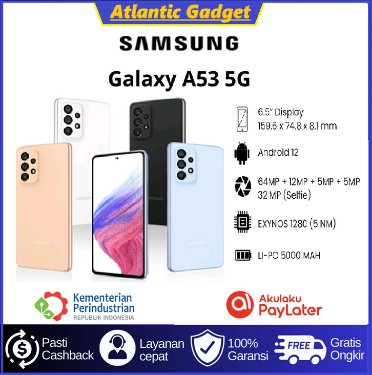 Hp Samsung Galaxy A53 5G 8/256GB | SoC Exynos 1280 | Layar 6.6" Super AMOLED | Kamera 64MP | NFC | IP67 Tahan Air & Debu