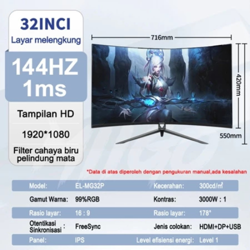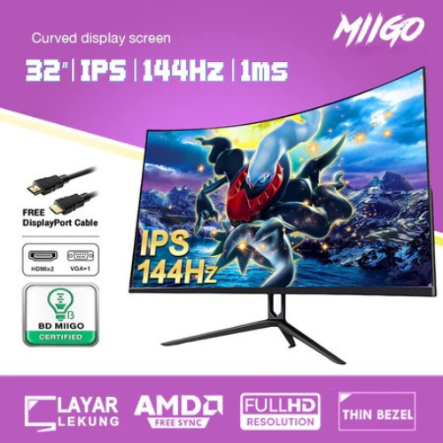 MIIGO MONITOR CURVED GAMING 32 24 22 19 INCH REFRESH RATE 144HZ 165HZ FILTER BLUE LIGHT PANEL IPS 2MS 1MS USB HDMI VGA