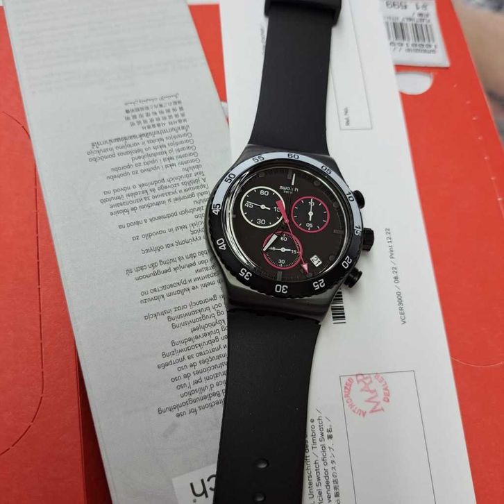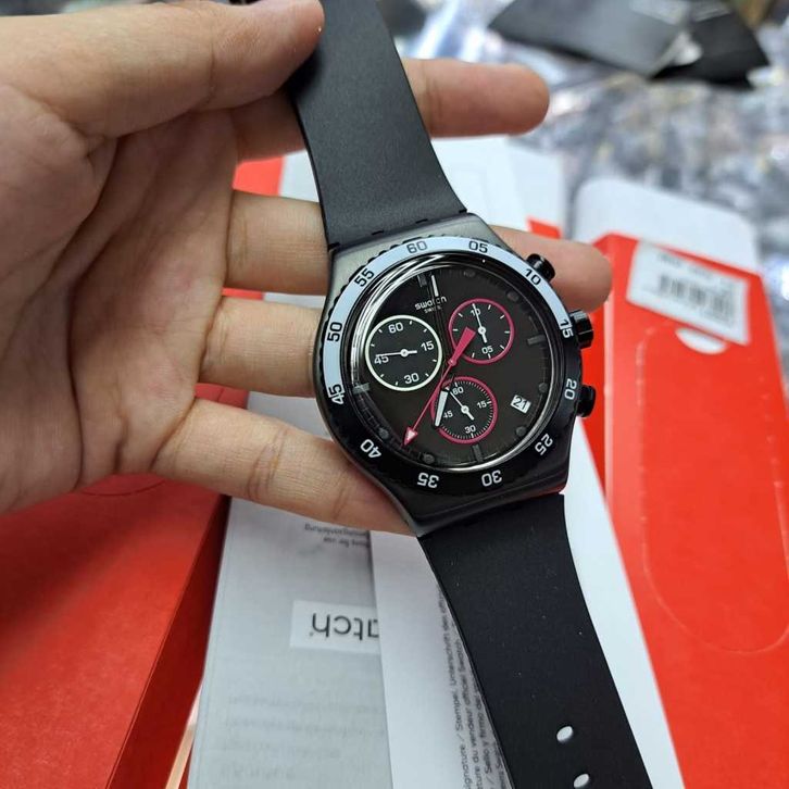 JAM TANGAN SWATCH YVB413 MAGENTA AT NIGHT ORIGINAL JAM TANGAN UNISEX UNISEX IRONY CHRONOGRAPH SWATCH GARANSI RESMI 2 THN