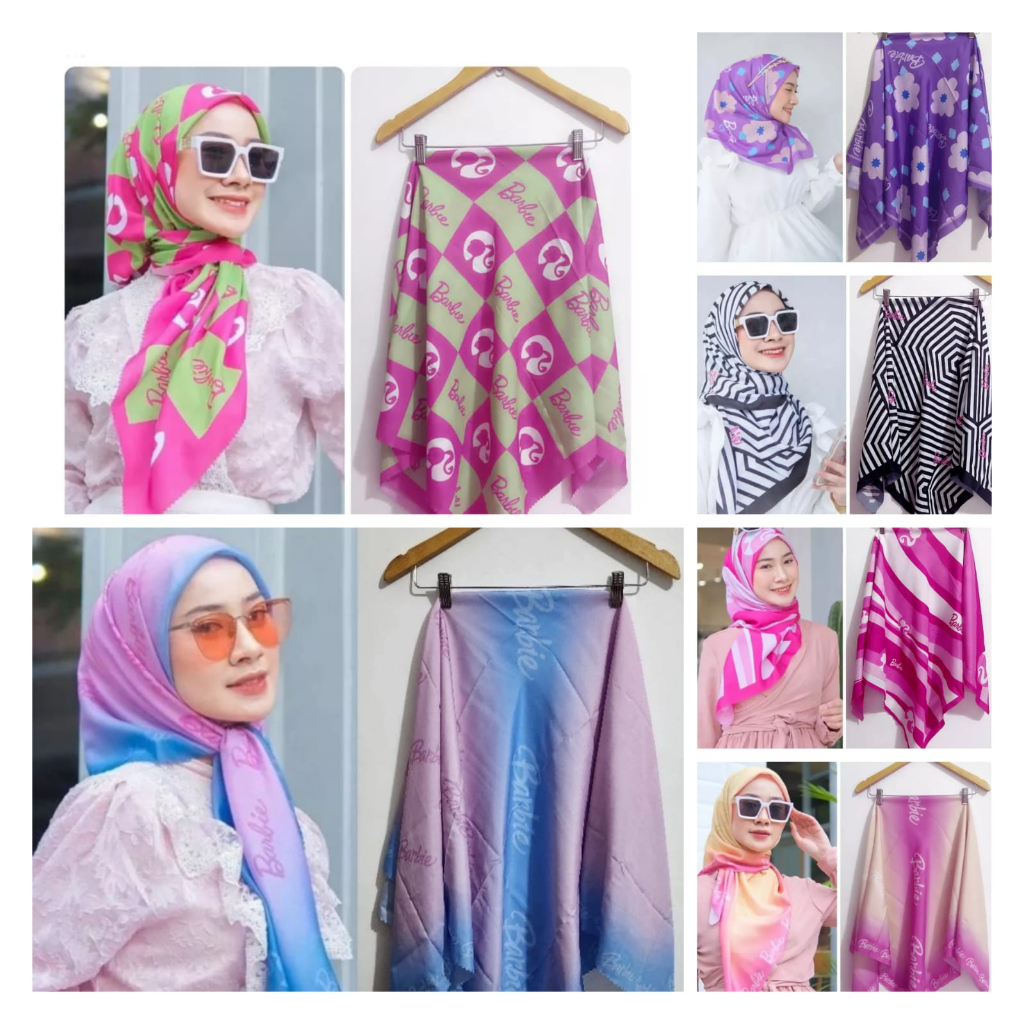 SALE HIJAB SEGI EMPAT VOAL SUBLIM MOTIF BARBIE VIRAL/ HIJAB DENAY MOTIF BARBIE TERBARU