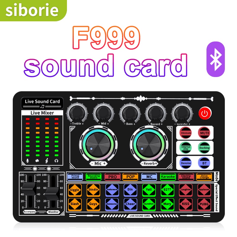 SIBORIE F999 SOUNDCARD+M998 MIC PAKET LENGKAP SET BLUETOOTH SOUND CARD MIKROFON WITH STAND ONGKOS KIRIM GRATIS