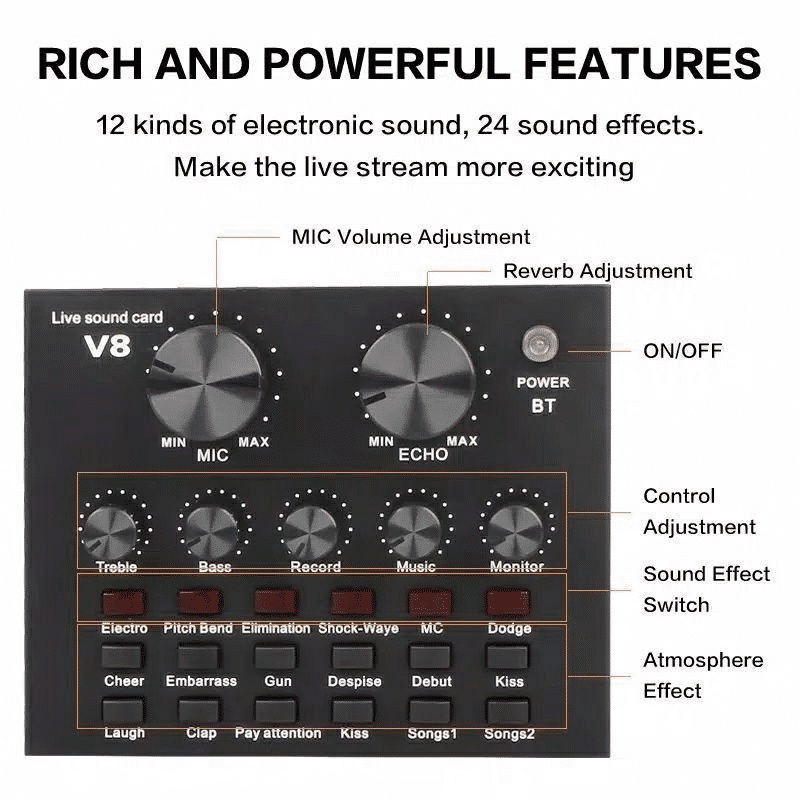 AKACC SOUNDCARD V8 MIXER BLUETOOTH AUDIO USB EXTERNAL / SOUNDCARD LIVE BROADCAST MICROPHONE HEADSET KARAOKE