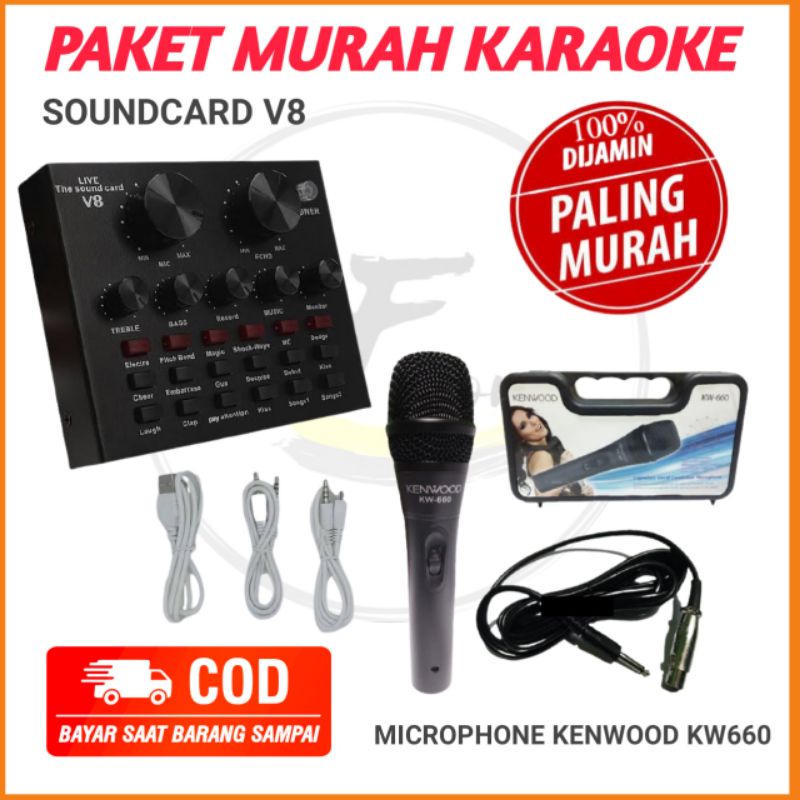 PAKET KARAOKE MURAH SOUNDCARD V8 DENGAN MICROPHONE DYNAMIC KENWOOD KW660