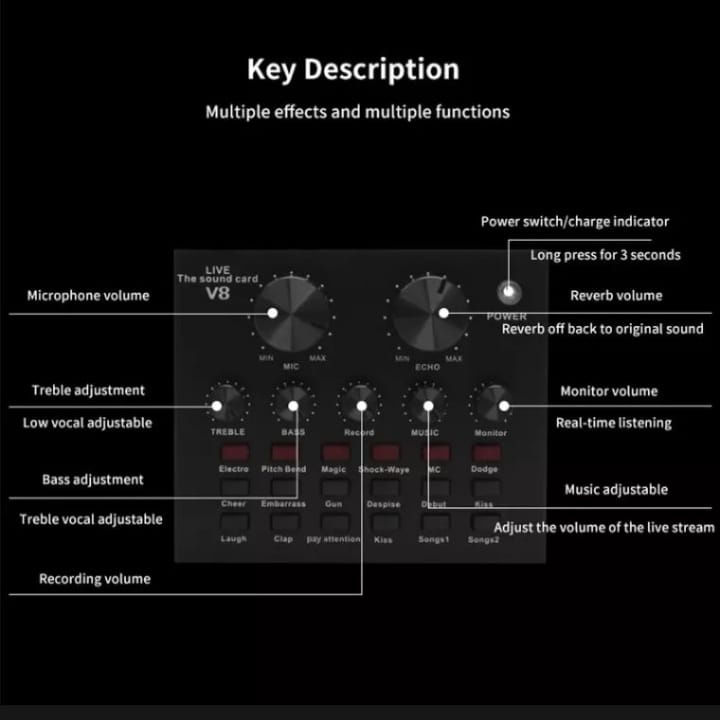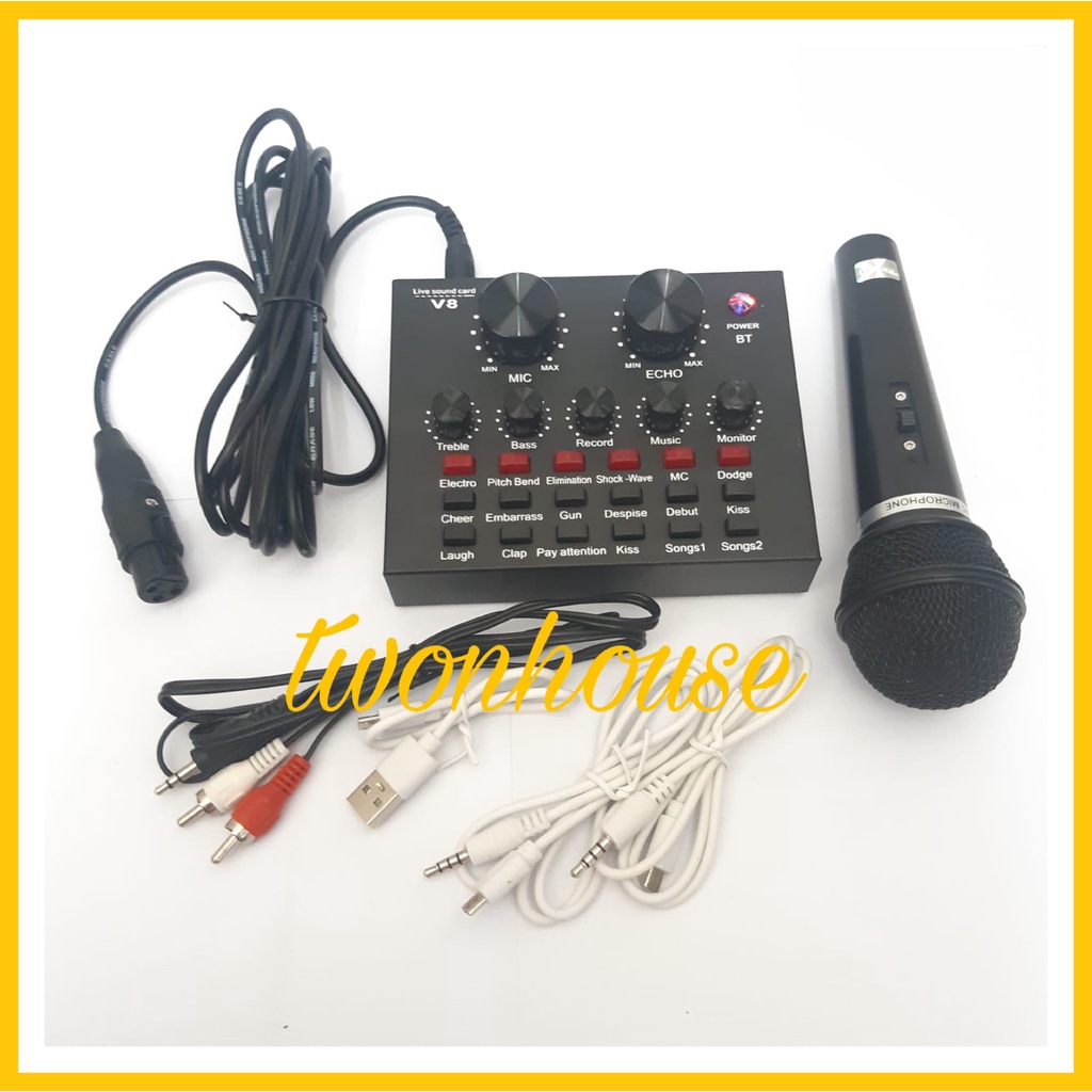 KARAOKE MIXER KARAOKE SOUNDCARD BROADCAST MICROPHONE - V8 V8 SOUNDCARD BLUETOOTH MIXERR DAN2 MIKALAT KARAOKE