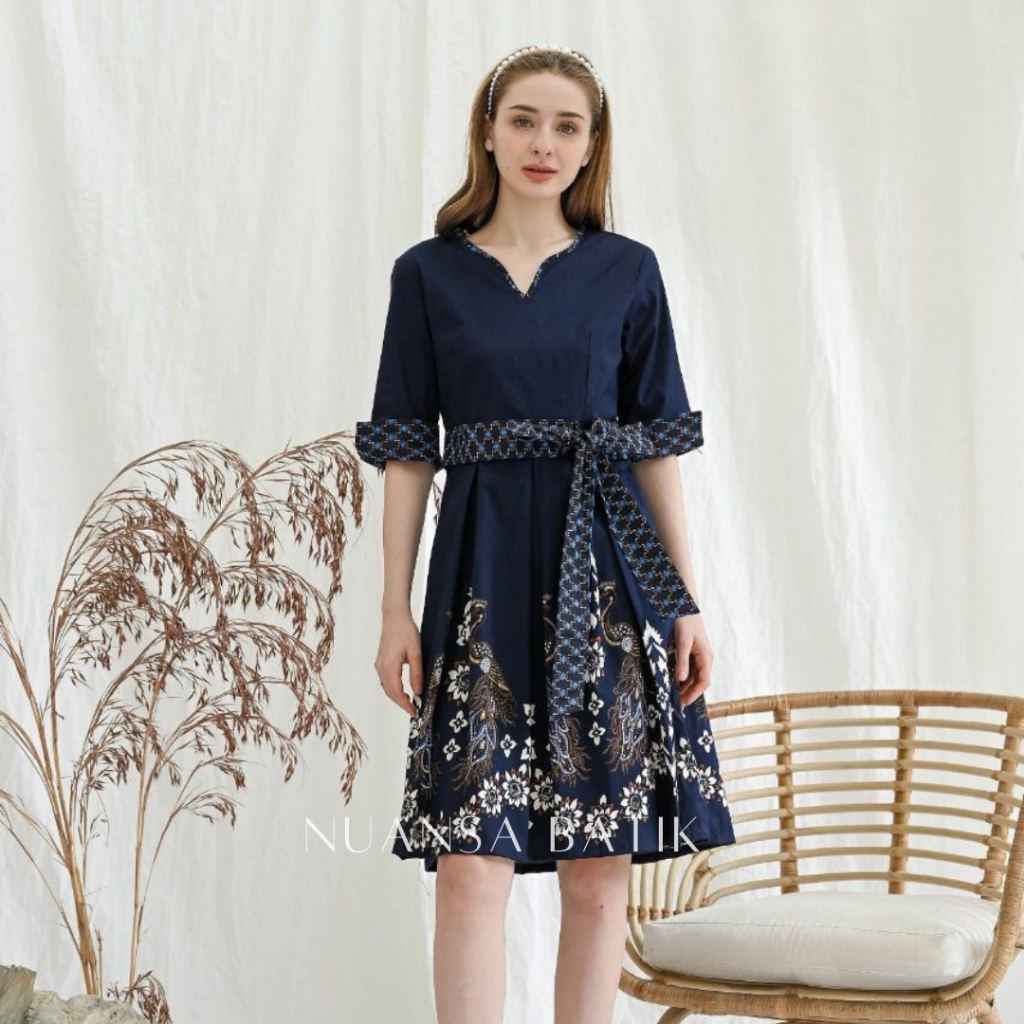 NUANSA BATIK DRESS BATIK LENGAN 7/8 BAHAN KATUN STRETCH