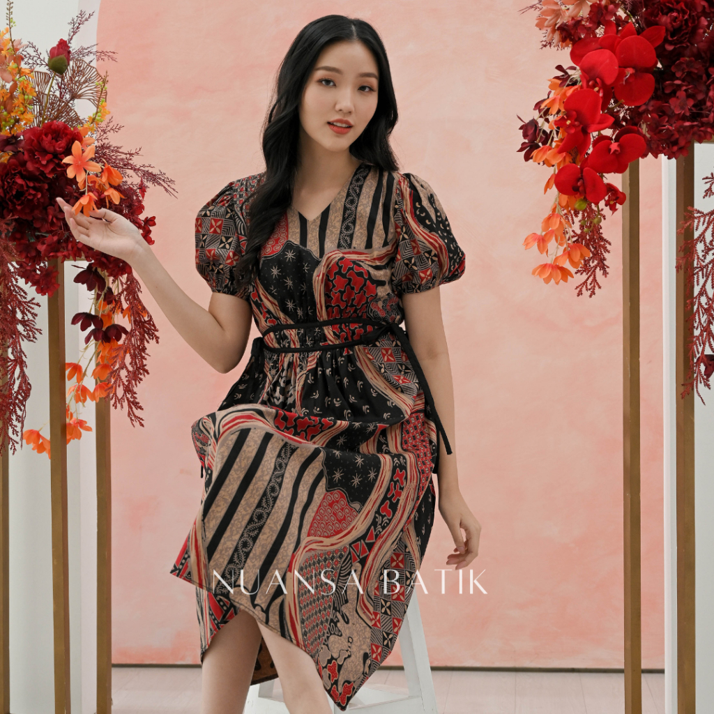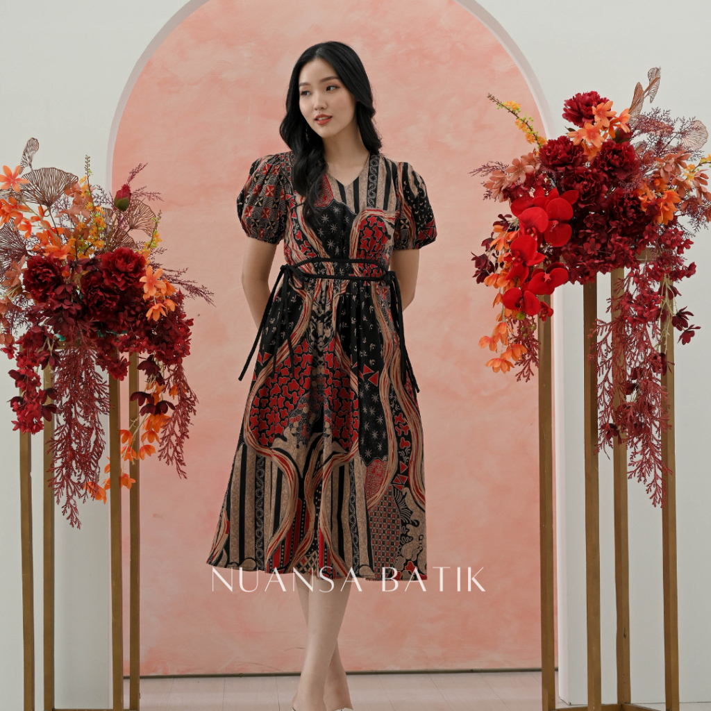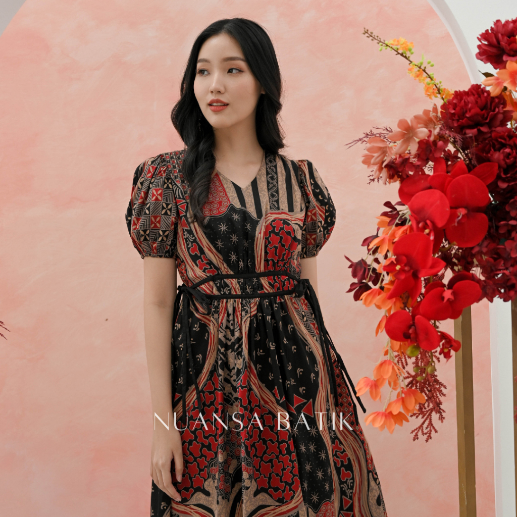 NUANSA BATIK DRESS BATIK MIDI BAHAN KATUN STRETCH