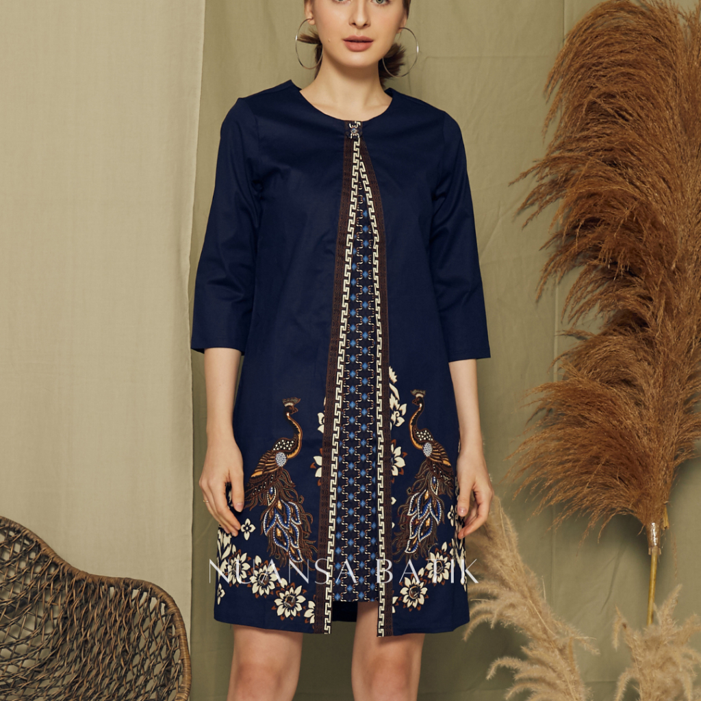 NUANSA BATIK DRESS BATIK LENGAN 7/8 BAHAN KATUN STRETCH