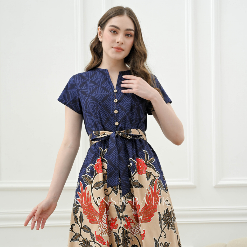 NUANSA BATIK DRESS BATIK MIDI BAHAN KATUN STRETCH