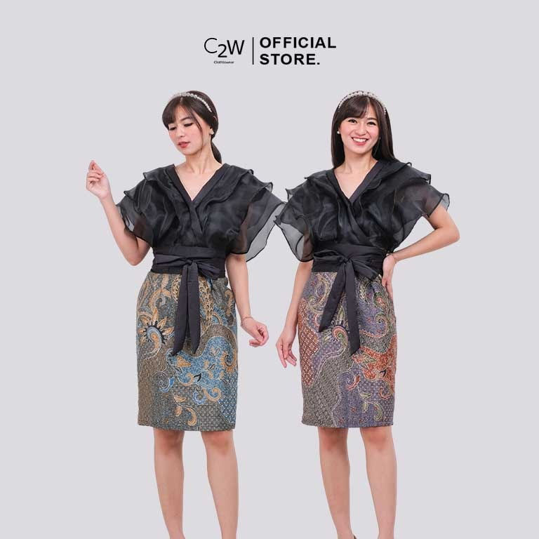 C2W CLOTHTOWEAR DRESS BATIK WANITA ALL SIZE SATIN WOMEN'S CLOTHES 738-SBN