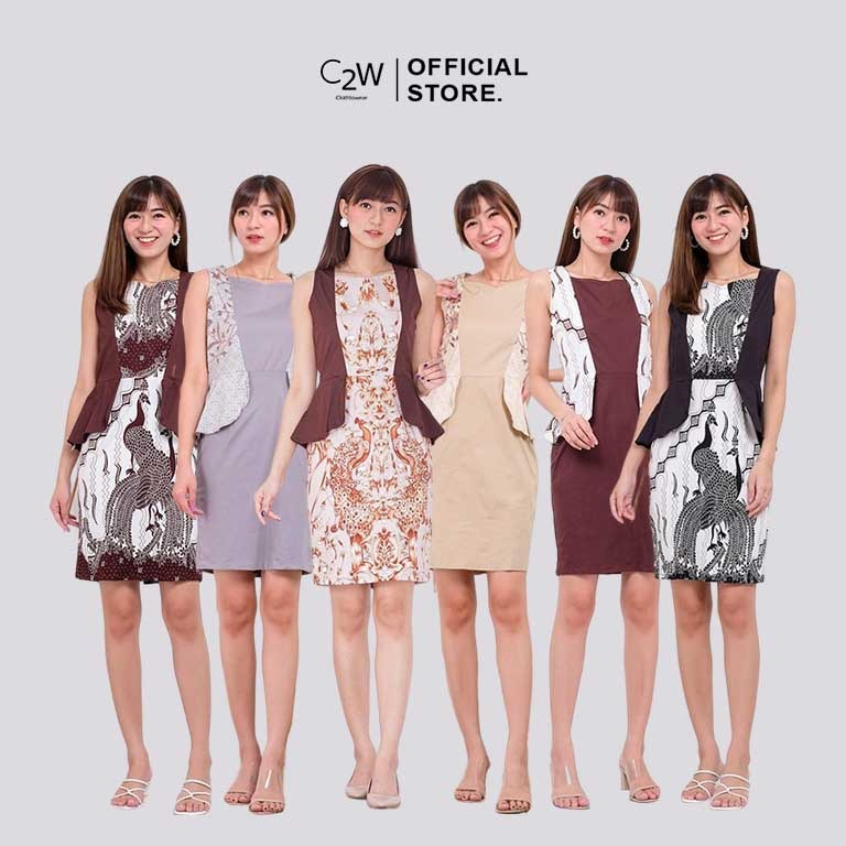 C2W CLOTHTOWEAR DRESS BATIK WANITA ALL SIZE SATIN WOMEN'S CLOTHES 917