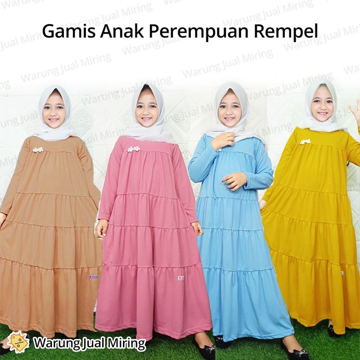 Gamis Anak Princess Warna Pelengkap Model Rempel Susun Bahan Jersey Polos Hitam Biru Dusty Pink Sage Lilac Mustard Dress