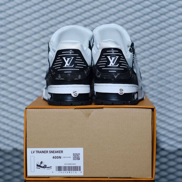(GRATIS ONGKIR) Sepatu Pria Louis Vuitton Trainer White Black Perfect Kick Original Premium.