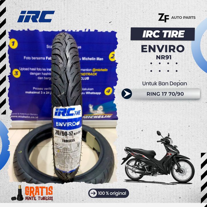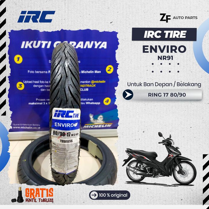 BAN LUAR MOTOR RING 17 IRC ENVIRO TUBLES TUBELESS SEPASANG DEPAN BELAKANG BEBEK UKURAN 90 90 80 90 70 90 SUPRA VEGA