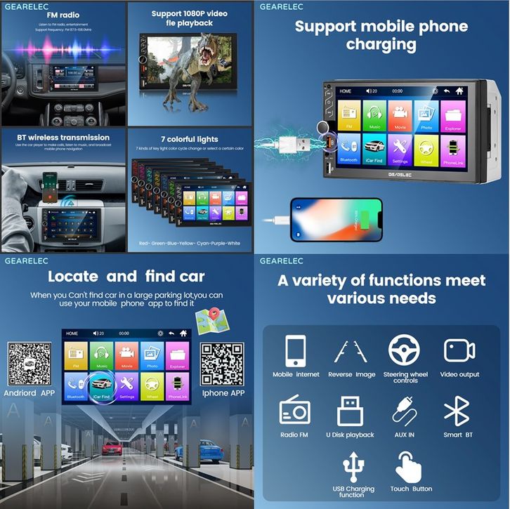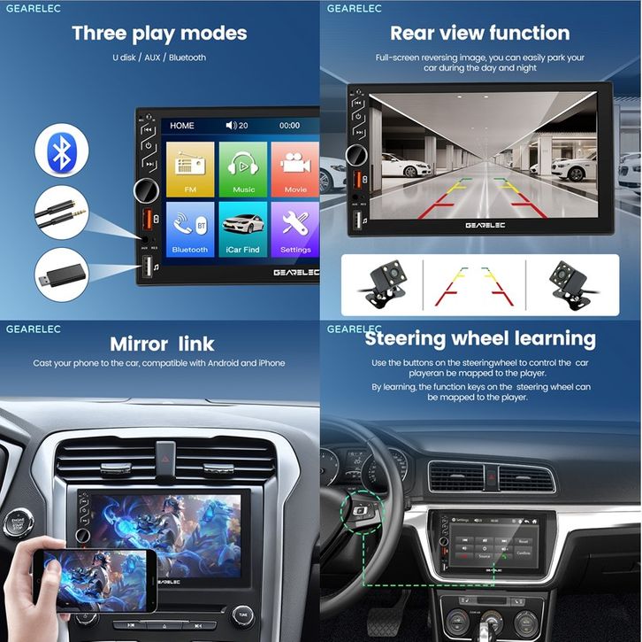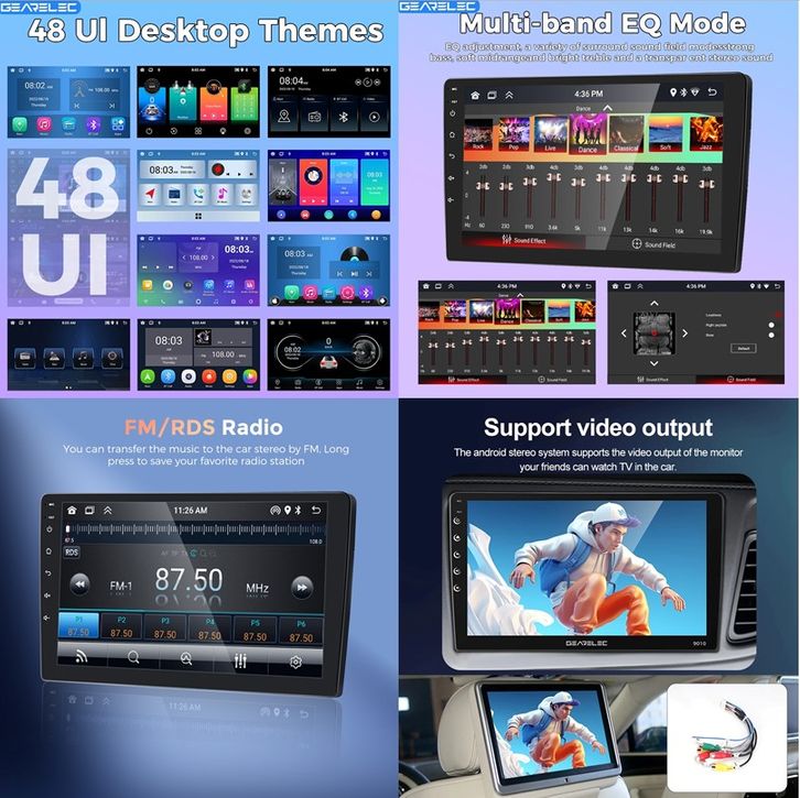 Head Unit Android Gearelec Double Din Headunit 4+32G Carplay Android 13 7/9/10 Inci Dukungan Wifi/Gps/Youtube/48 Tema