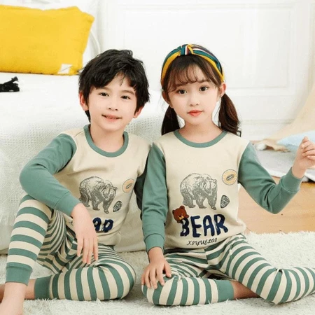 1-10 TAHUN BAJU TIDUR ANAK LENGAN PANJANG / SETELAN PIYAMA ANAK LAKI LAKI PEREMPUAN UNISEX BAHAN KAOS TERBARU