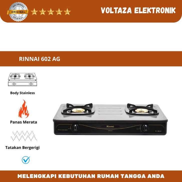 [Star]Kompor Gas Rinnai 2 Tungku RI602AG Stainles Anti Gores Portable Original Terbaru 2024