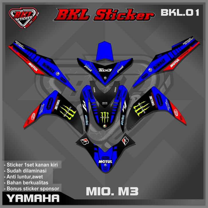 TERLARIS Stiker Striping DECAL Variasi Lis MIO M3 Full Body Desain Racing BKL.01 Sticker Motor