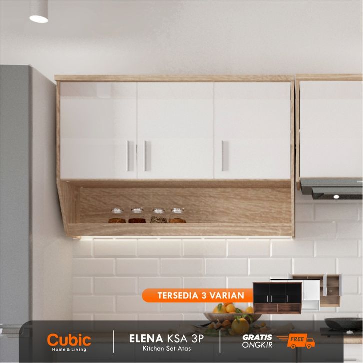 TERMURAH Cubic Kitchen Set 3 Pintu Minimalis / Rak Atas Dapur / ELENA KSA 3P - Hitam / Putih