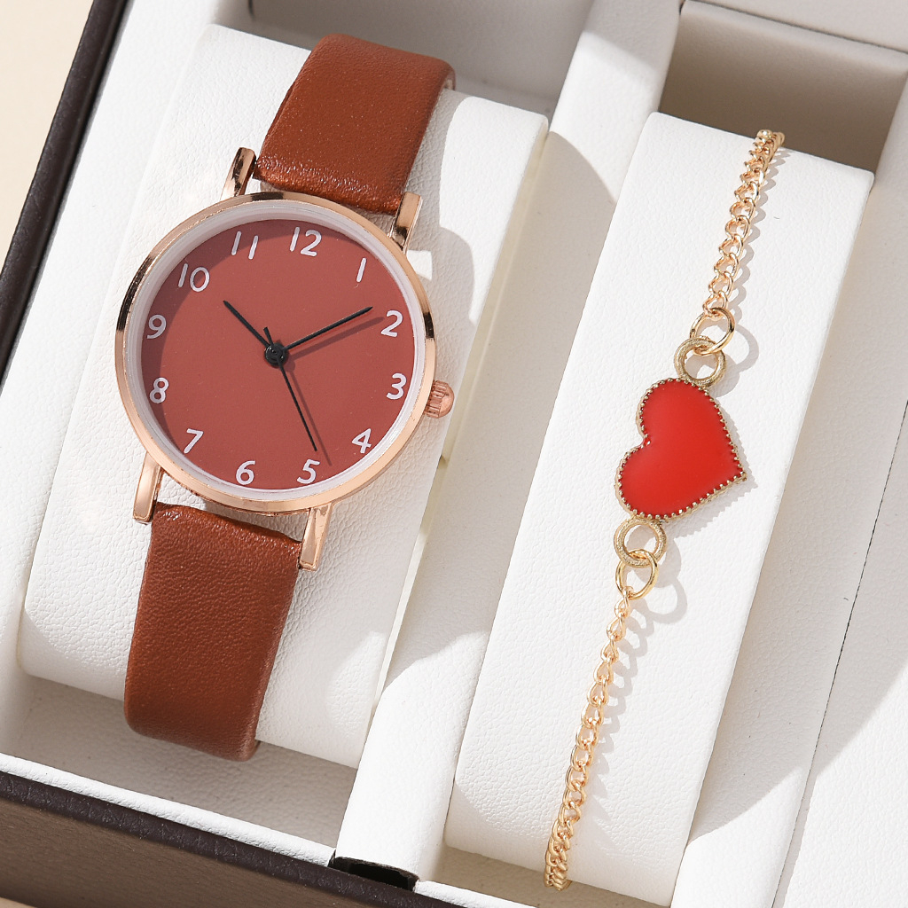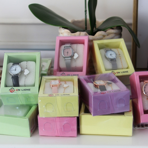 EN LIGNE EL540SET - JAM TANGAN FASHION WANITA MODEL BULAT TALI KULIT SET DENGAN GELANG DAN BOX
