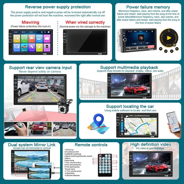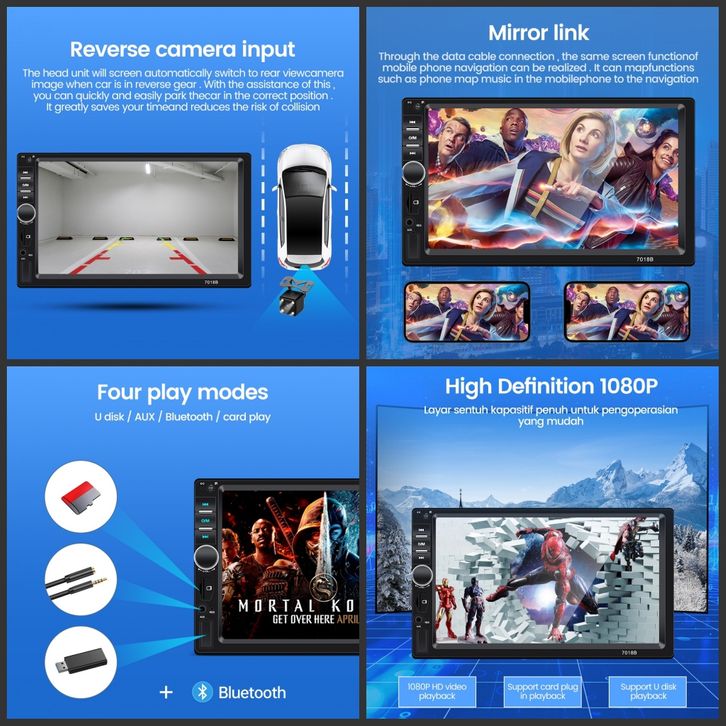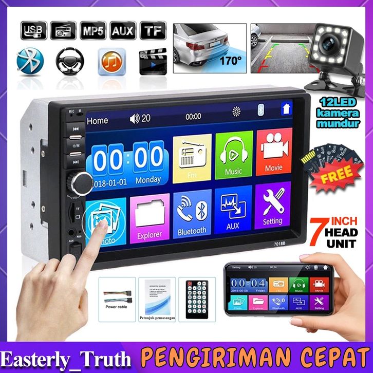 Head Unit 7 Inch MP5 Multimedia Player Mirrorlink Double Din Bluetooth Audio Mobil In Touch Screen Radio & Kamera Mundur