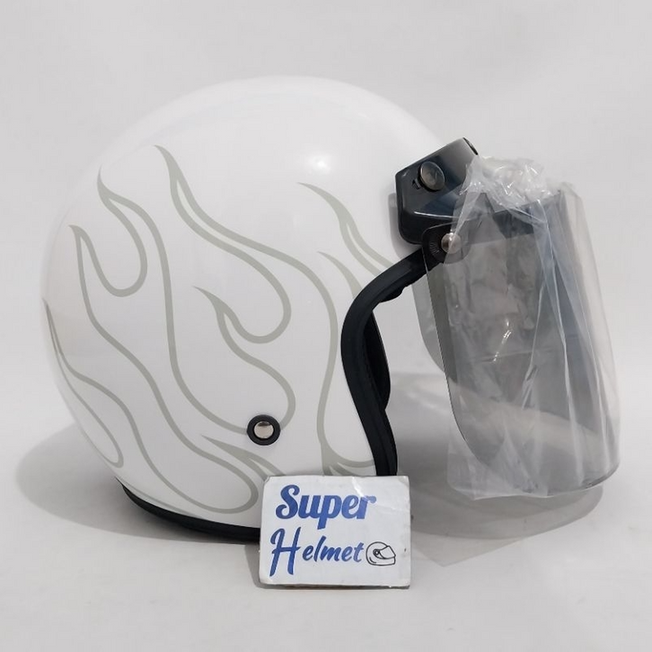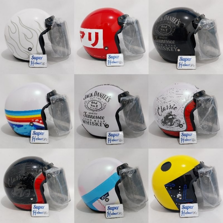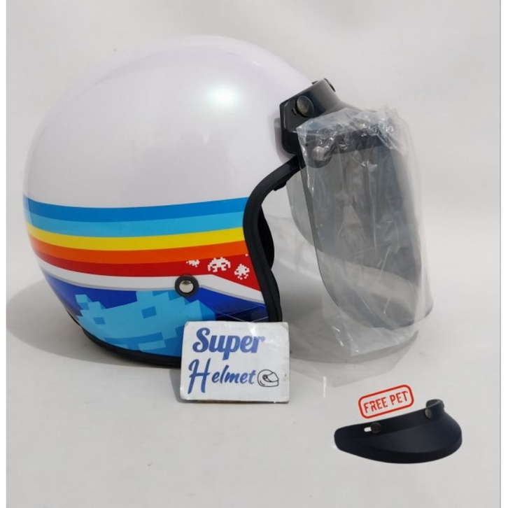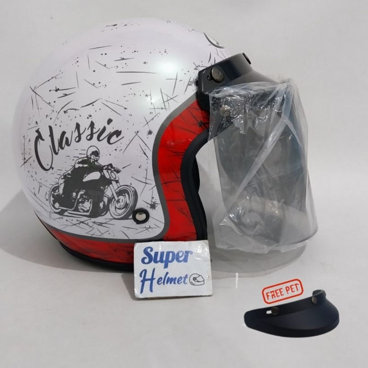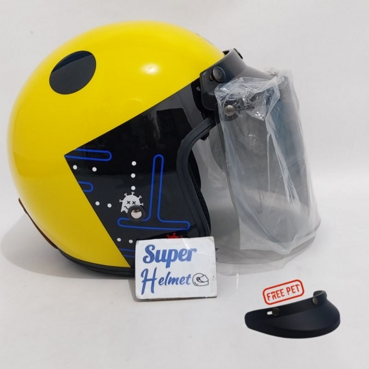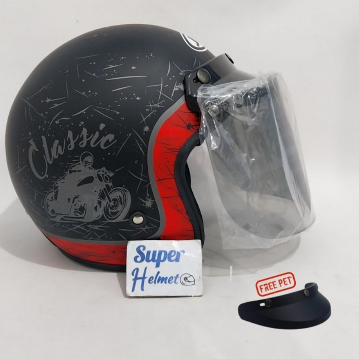 Helm JP Retro Bigie Motif Dan Kaca JP Flat Smoke Helm Pria Murah Helm BOGO Wanita Murah