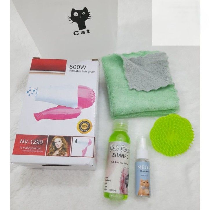 PAKET GROOMING HEWAN MANDI KUCING HAIR DRYER + HANDUK MICROFIBER + SISIR + SHAMPO GRATIS TAS POUCH