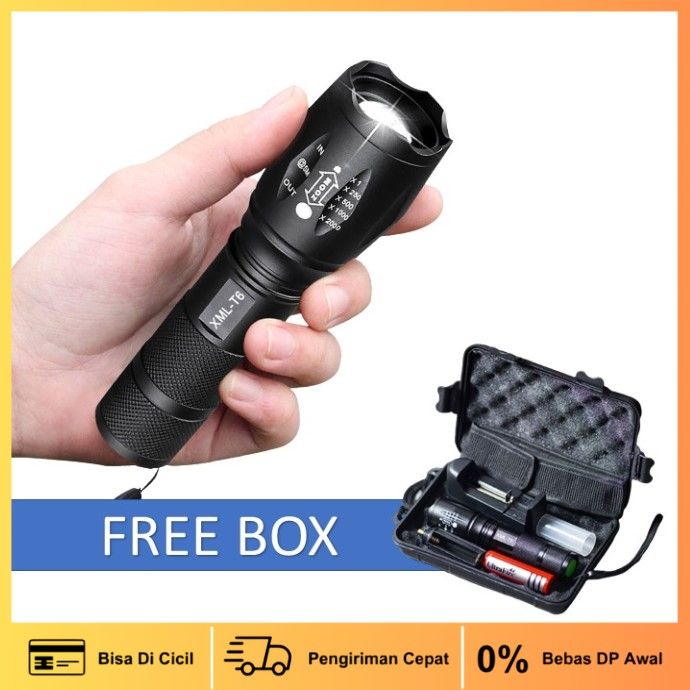 Senter LED Super Terang XML-T6 Anti Air/Cas/Senter Led Super Terang Jarak Jauh/Original/Senter Kepala Super Terang