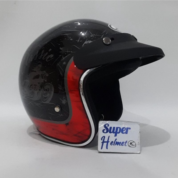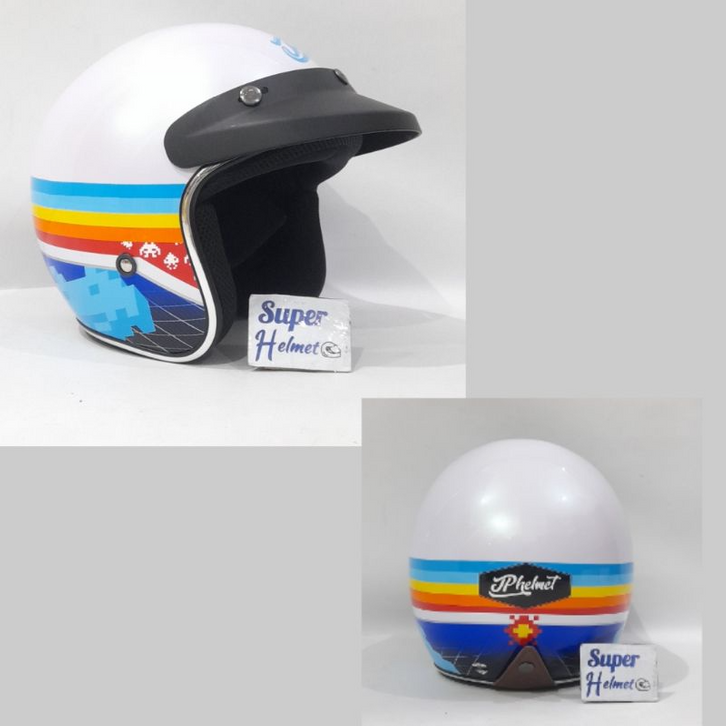 Helm JP Retro Bigie Motif By JPX Combi / Baba / Space / Pac / Born To Ride New List Black