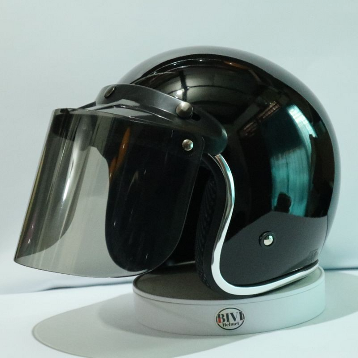 Helm Bogo Retro List Chrome Kaca Datar SNI - Dewasa Pria & Wanita