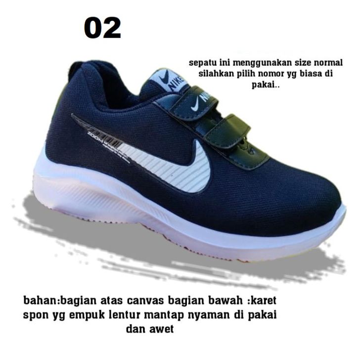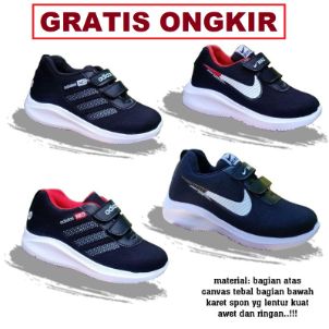 Sepatu Sneaker Sekolah Anak Anak Laki Laki Perempuan Kecil Tanggung Umur Usia TK SD SMP SMA Warna Hitam Rekat Velcro