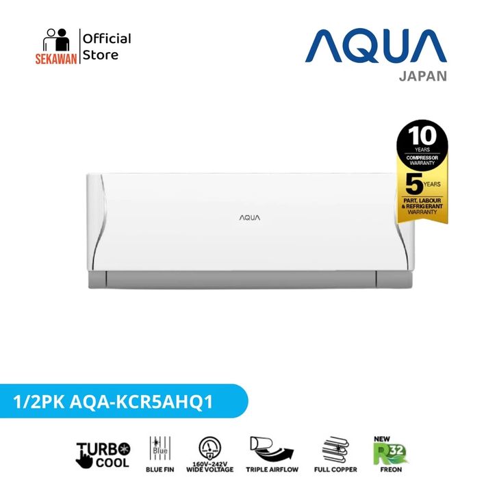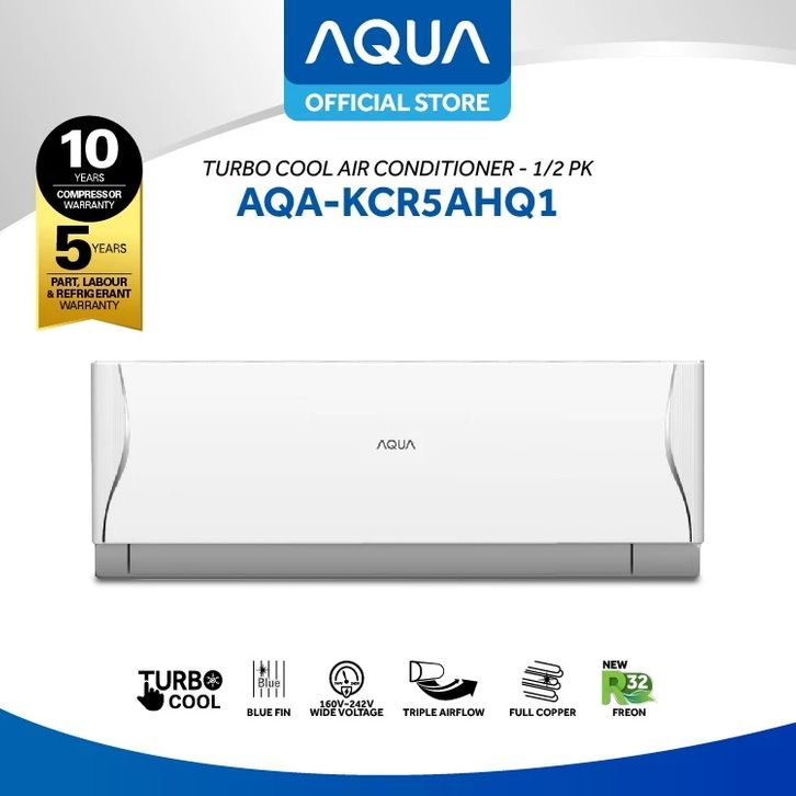 AC AQUA JAPAN AQA-KCR5FQDL NEW AC 0.5 PK STANDARD 360W-R32 FAST COOLING WITH TRIPLE AIRFLOW+ ANTI CORROSION - 1/2 PK