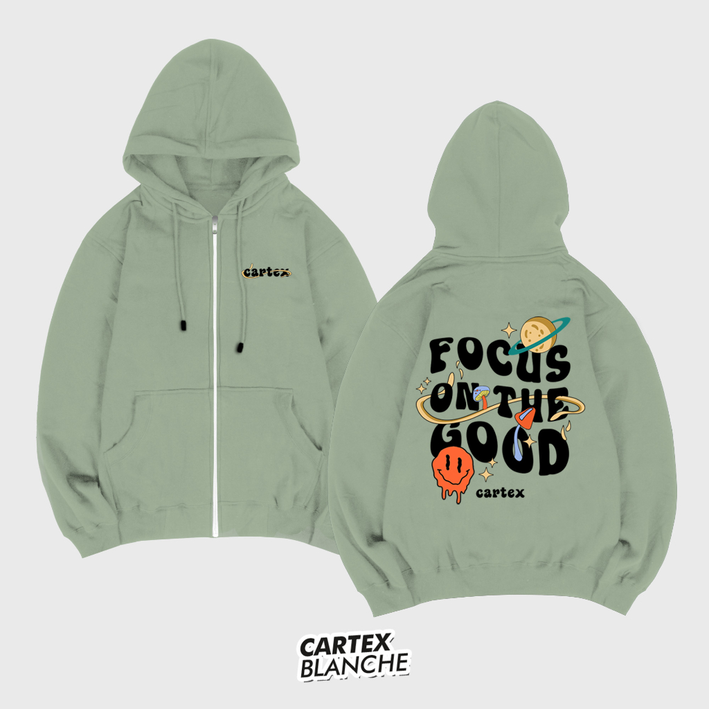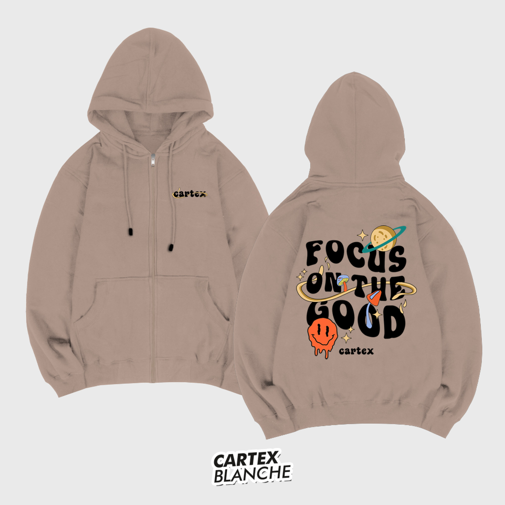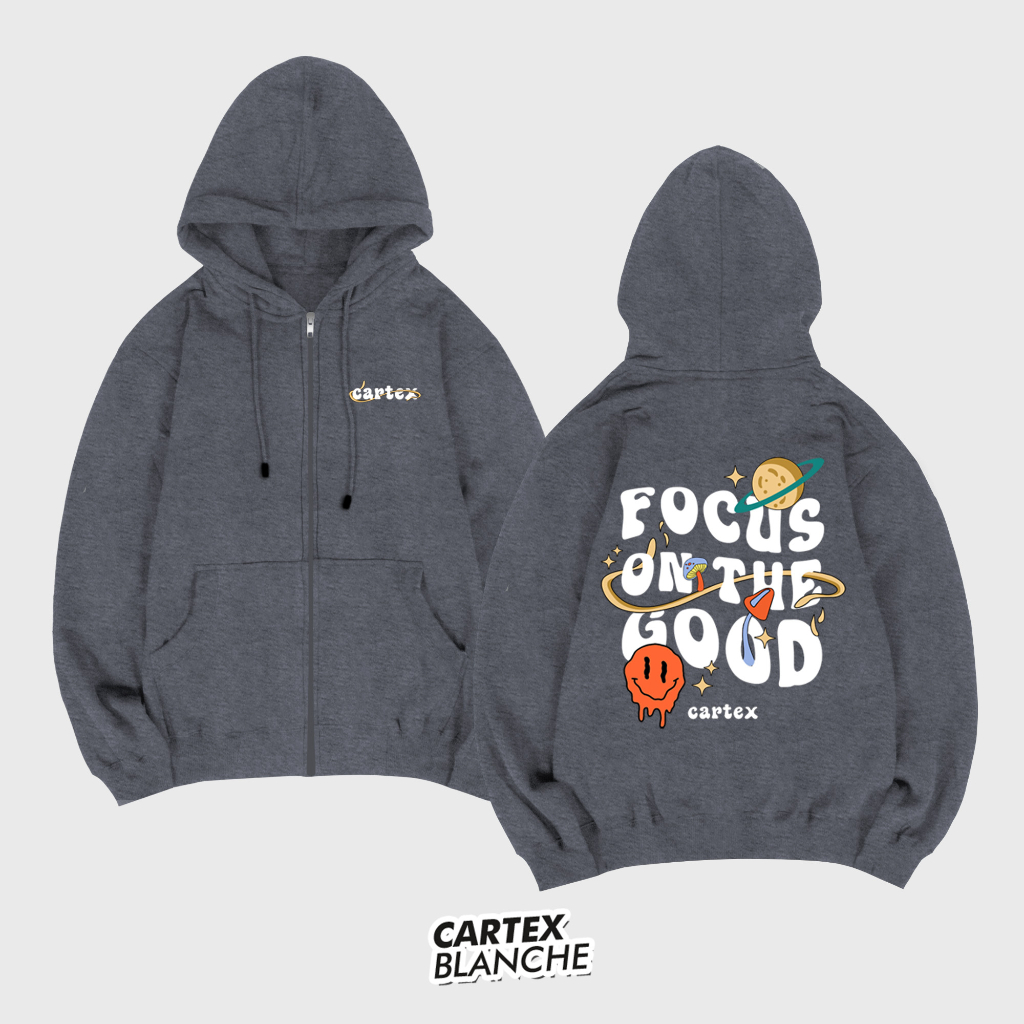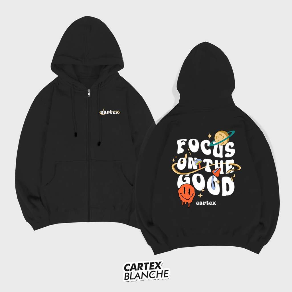 CARTEXBLANCHE - FOCUS JAKET HOODIE ZIPPER SABLON UNISEX PRIA - WANITA SIZE M - XXL