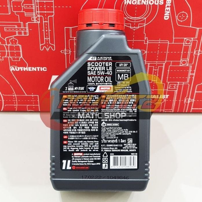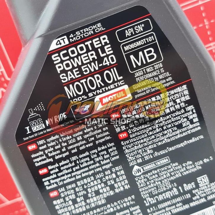 OLI MOTUL SCOOTER POWER LE 5W-40 1L FULL SYNTHETIC NMAX XMAX AEROX 155 PCX ADV LEXI VESPA