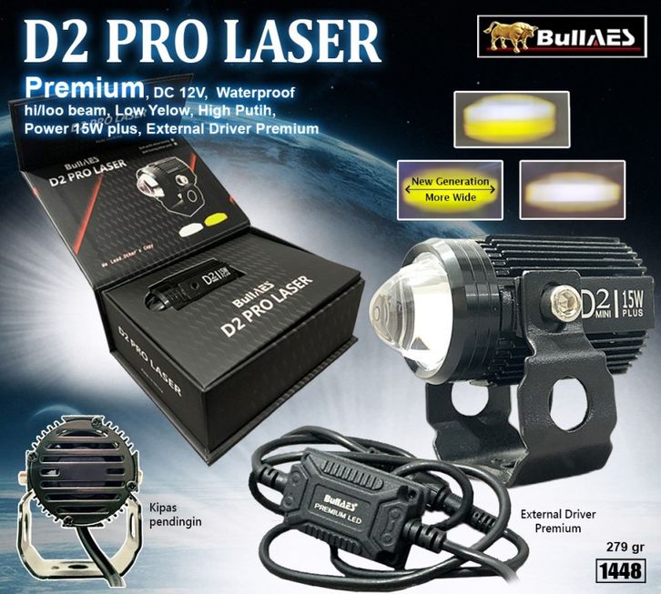Lampu Tembak Laser D2 PLUS Hi Loo 20 Watt Laser Output merk BULLAES