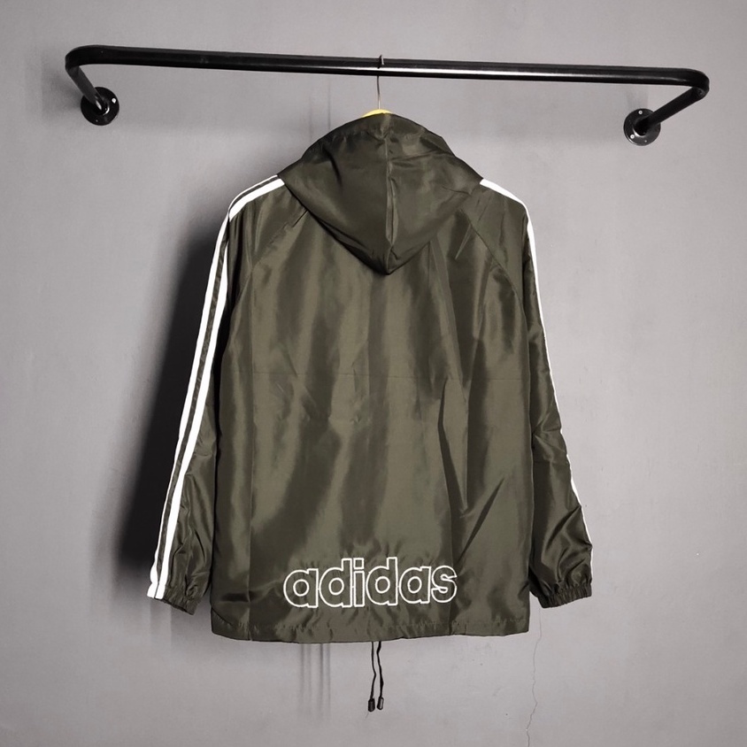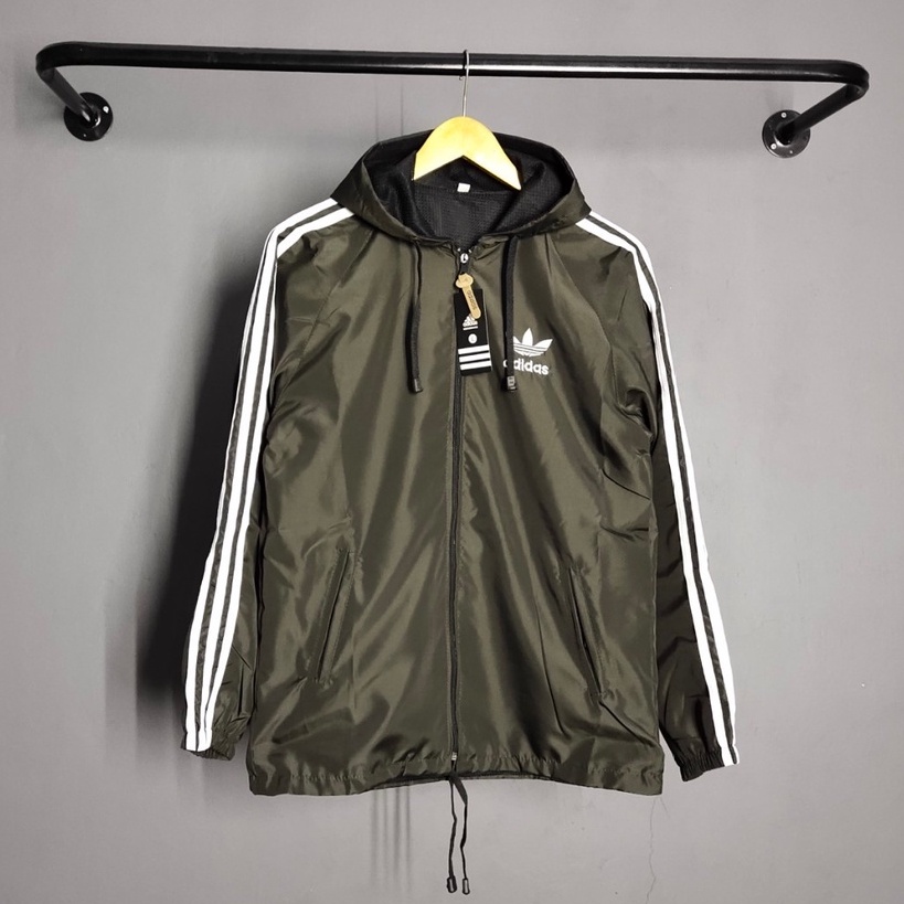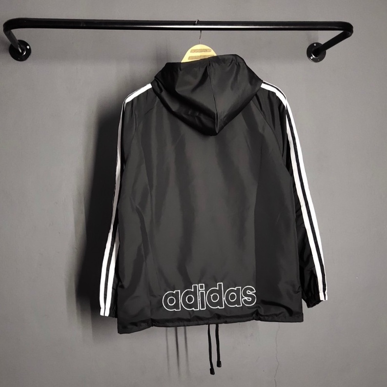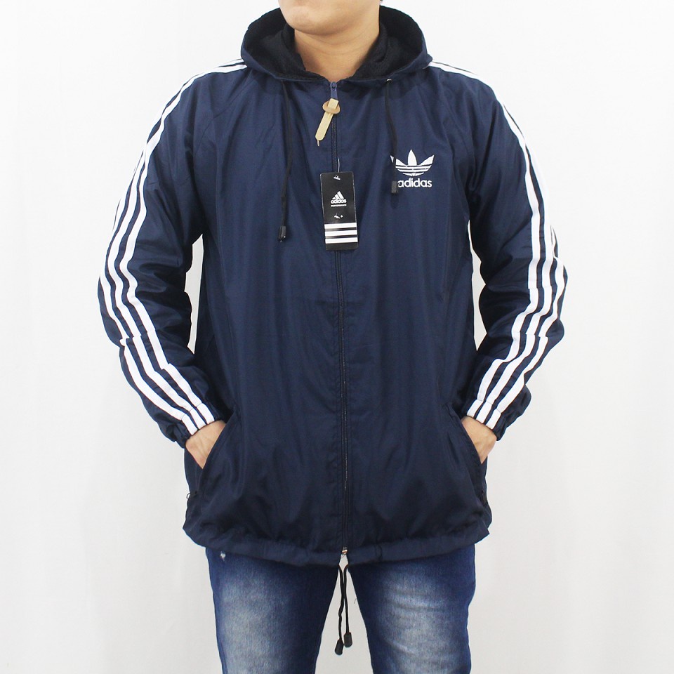JAKET PRIA PARASUT ADIDAS WINDBTEAKER HITAM LIST PUTIH XL XXL - JAKET PARSUT JUMBO - JAKET OLAHRAGA