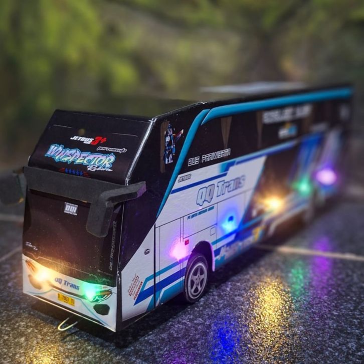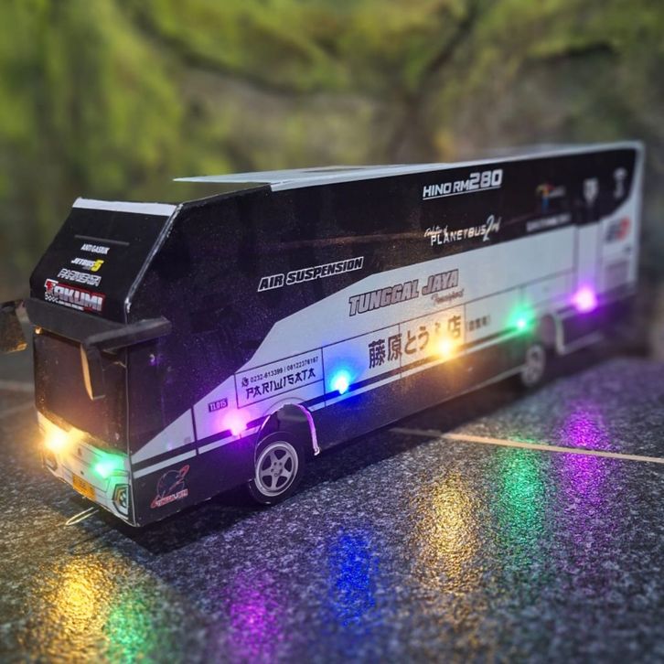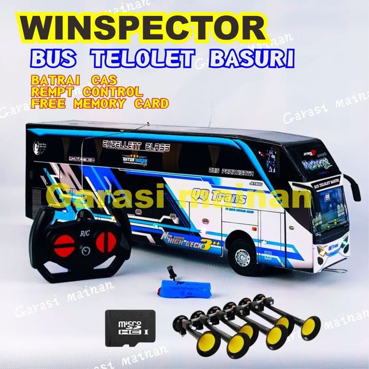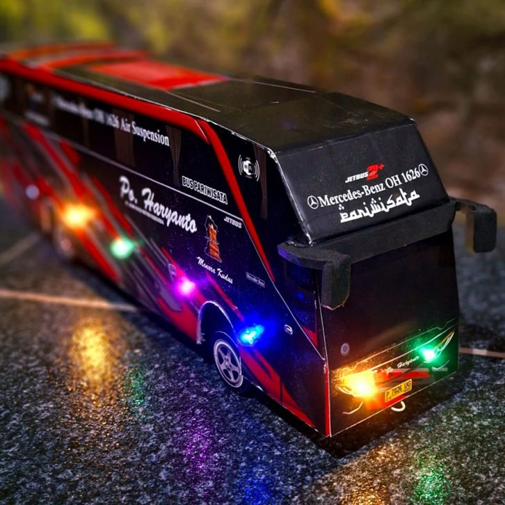 MAINAN MINIATUR BUS TELOLET BASURI Bus Telolet Basuri Remot Control Batrai Cas Full Lampu ukuran Jumbo