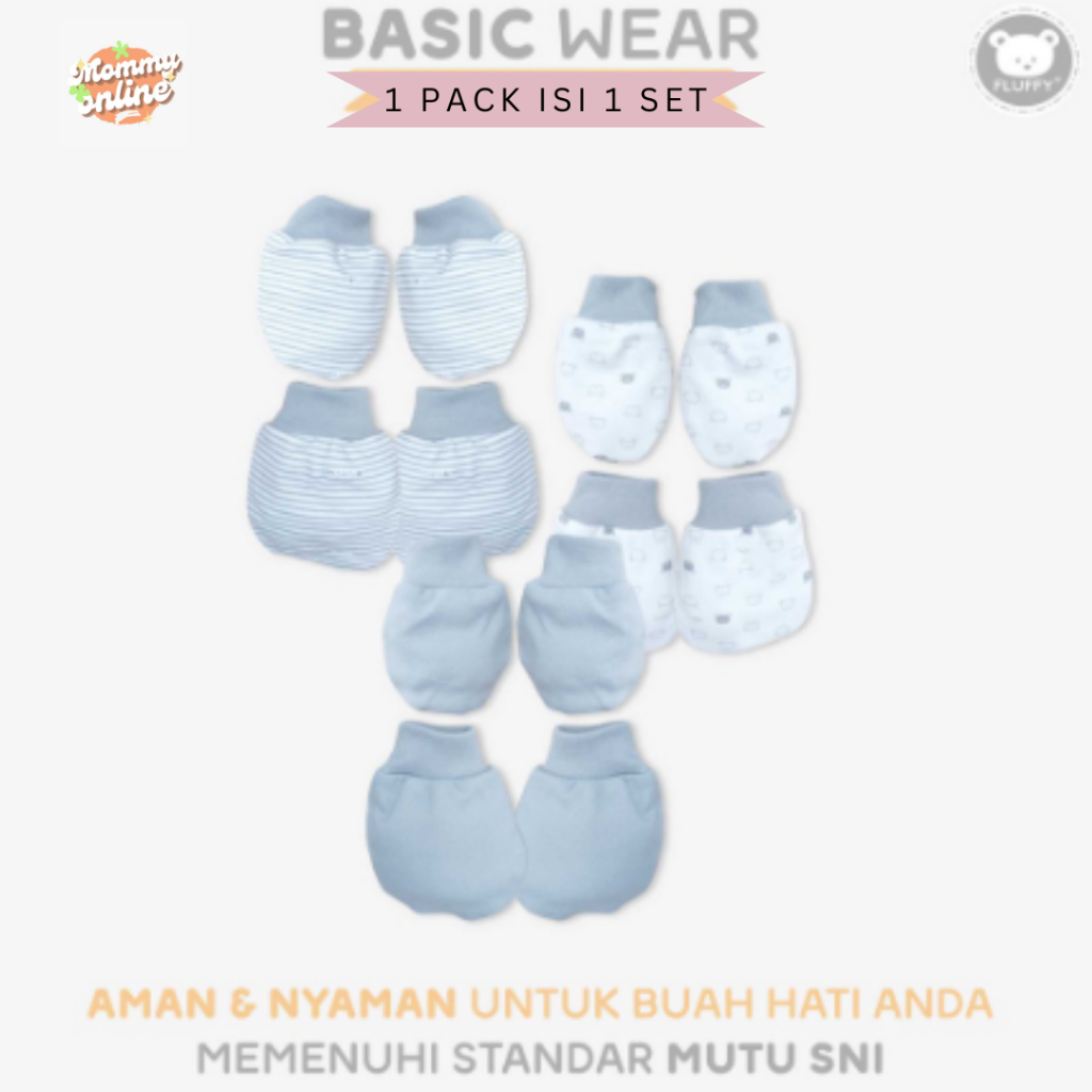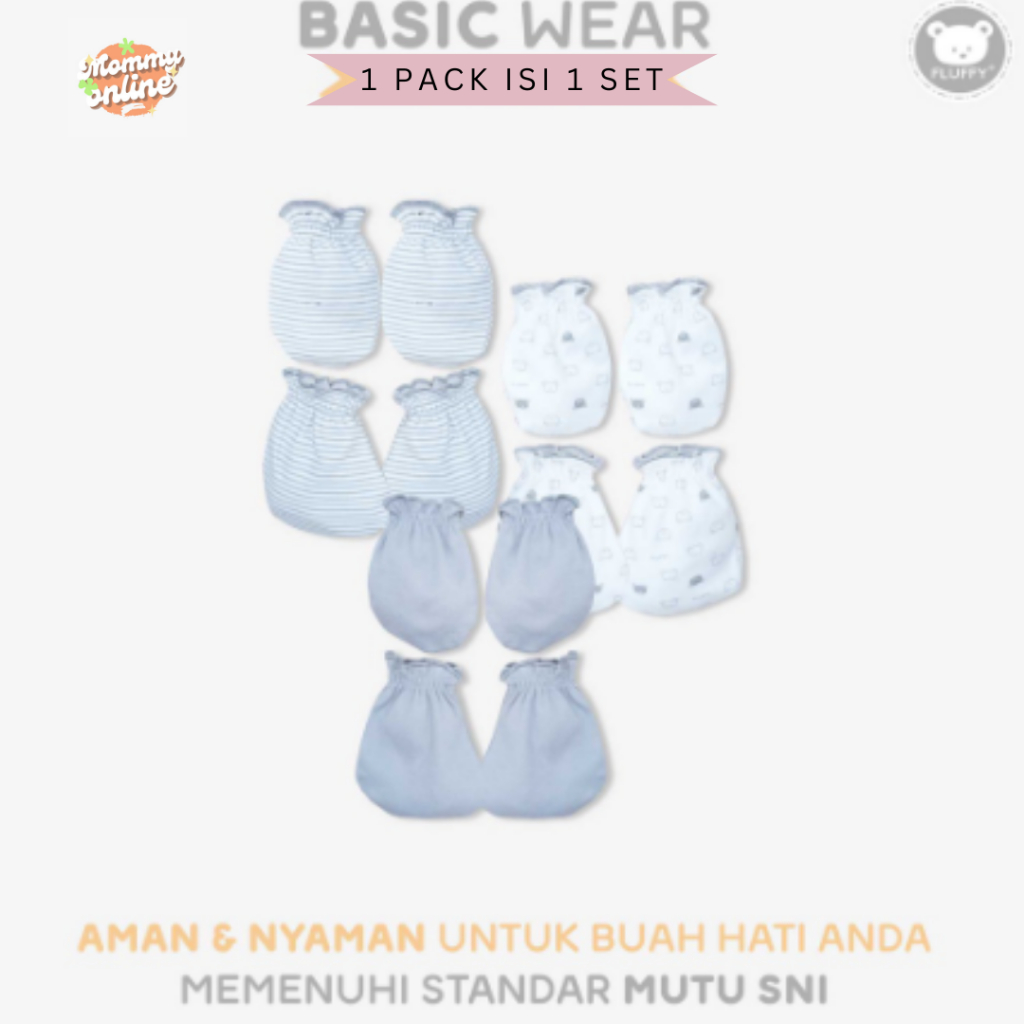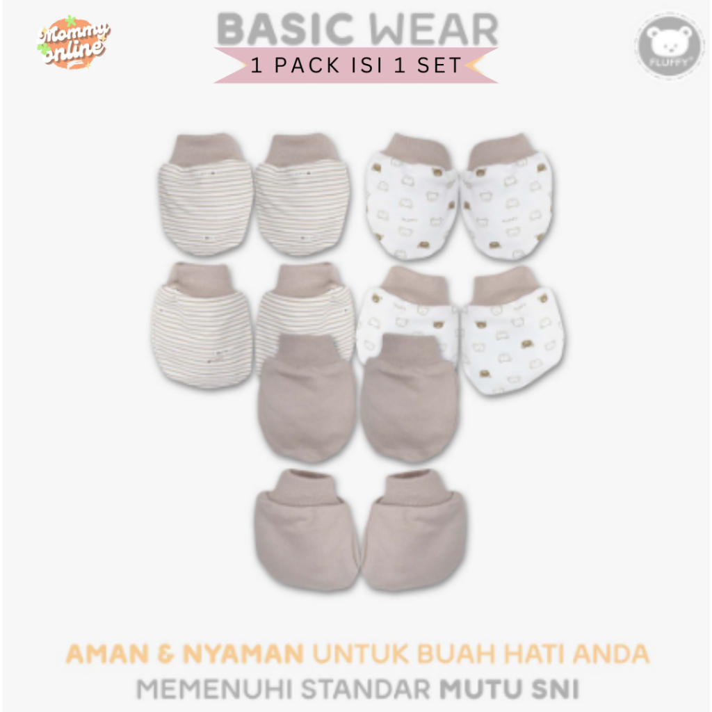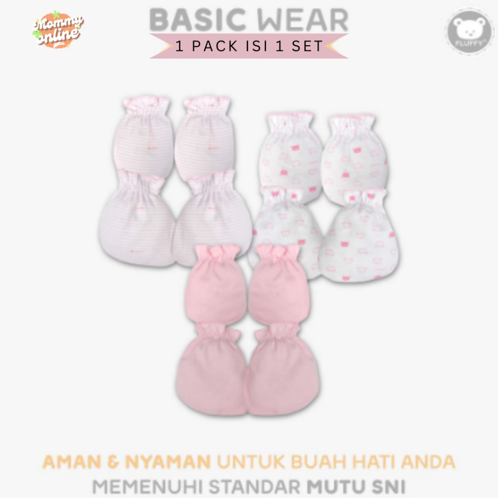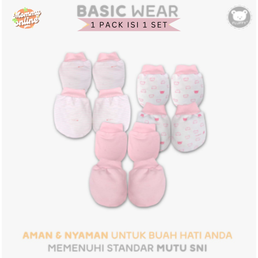 [MOMMYONLINE] FLUFFY SARUNG TANGAN DAN KAOS KAKI RIB STKR / KARET SERUT STK 1 SET NEWBORN