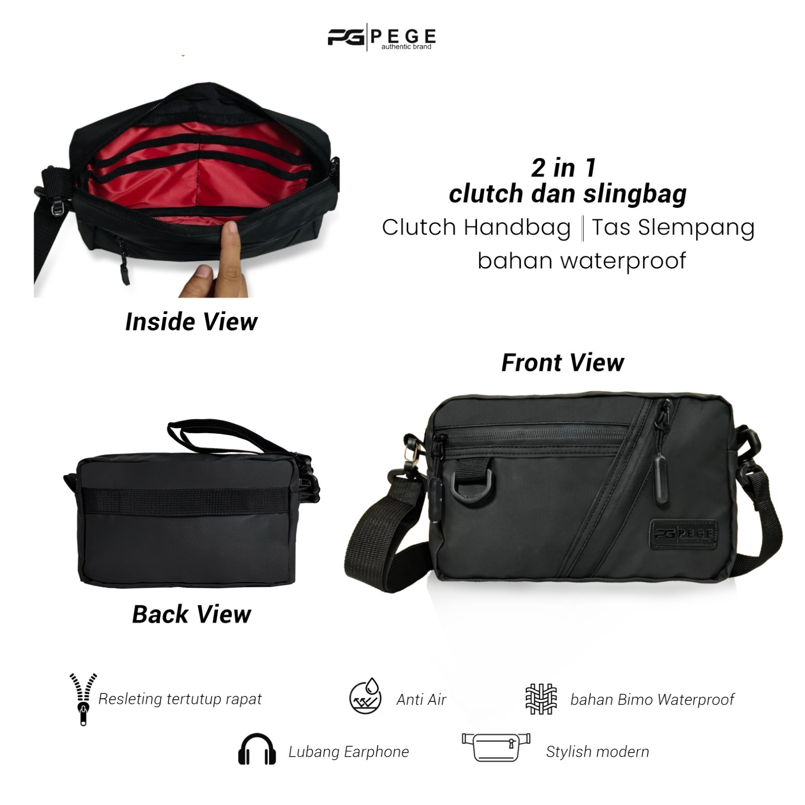 Tas Selempang Bahu Pria 2in1 Bisa Slempang Dan Pouch Slempang PEGE Cyrano Anti Air Bahan Bimo Waterproof - PG 8978