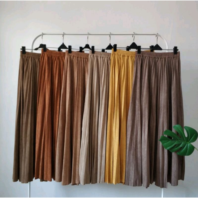 PROMO ROK PRISKET SUEDE LONDON GIRL IMPORT PANJANG 80CM & 95CM | ROK PRISKET SUEDE HITAM COKSU NAVY BROWN