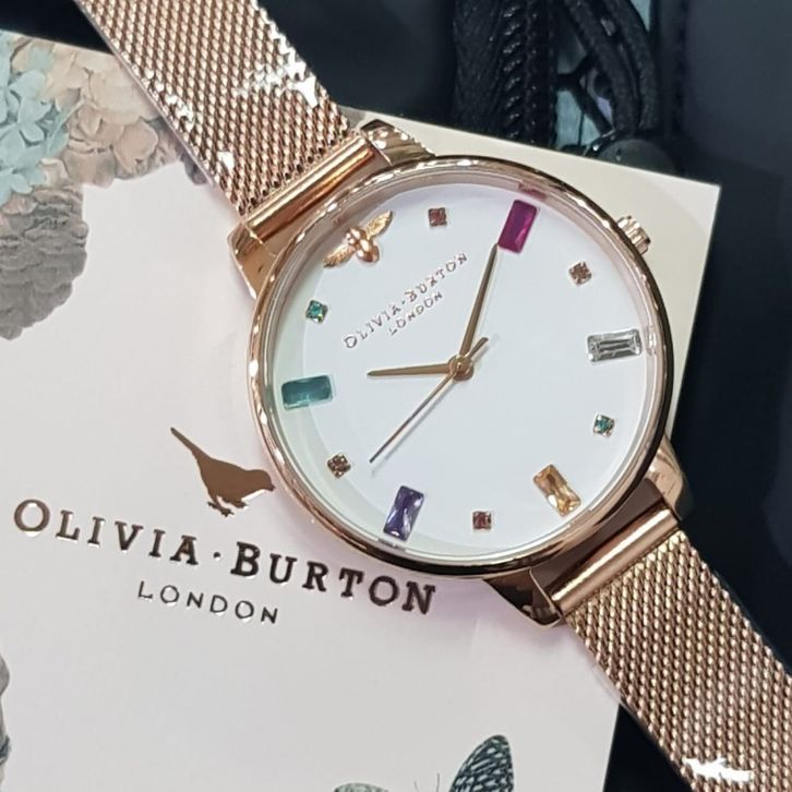 Jam Tangan Wanita Olivia Burton Original Rainbow Bee Pale RG Mesh
